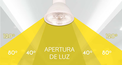 Las lámparas LED de ángulo cerrado (<45º) son apropiadas para iluminar zonas muy puntuales (cuadros, escaparates, elementos decorativos…) Por el contrario las lámparas LED con ángulos de apertura más abierto (60-120º) son ideales para iluminar superficies amplias y reducir las zonas de sombra (habitaciones, pasillos, oficinas).